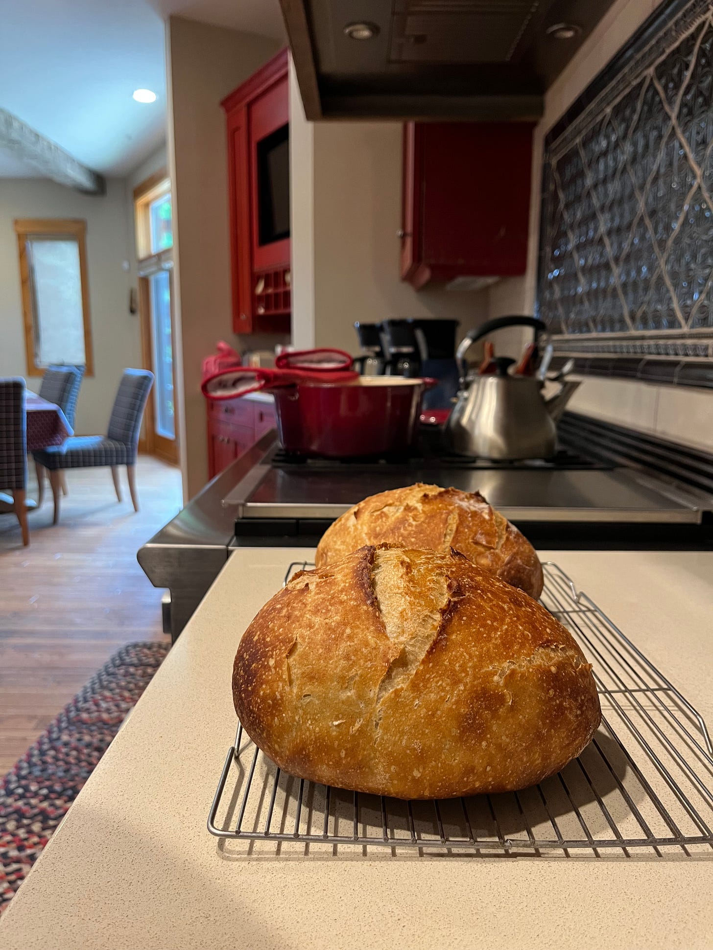No-knead bread. I continue to make loaf after loaf of Kendall Vanderslice’s version of no-knead bread. I’ve memorized the recipe now, and even packed the ingredients for a writing retreat and baked a couple loaves for our meals. I’m really enjoying having this simple skill in my back pocket!